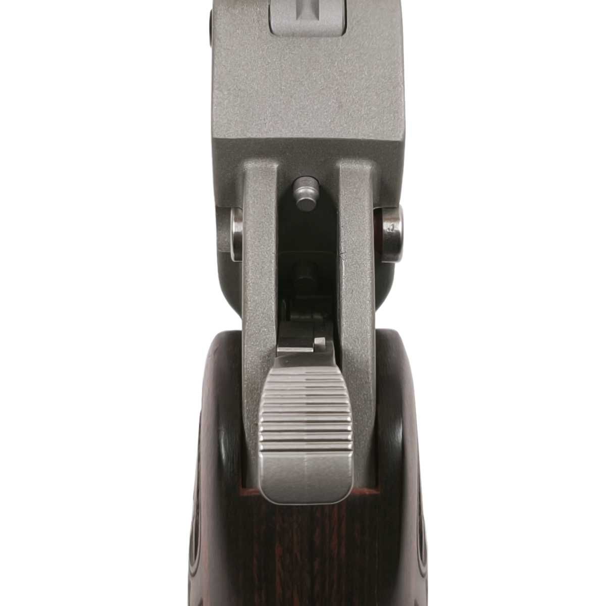 Strenky z palisandrového dreva nesou rytinu medveda grizzly, mají zdrsnenou povrchovou úpravu, jsou ergonomicky tvarované a snadno vymenitelné za jiný typ, ale kdo by to delal?