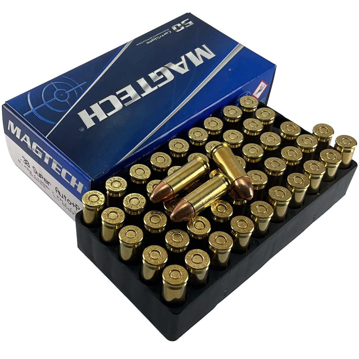 Pistolové náboje Magtech 38 Super Auto+P s celopláštovou strelou FMJ (Full Metal Jacket) jsou ideální volbou pro rekreacní a cvicnou strelbu na terc.