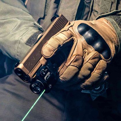 Zelený laser třídy IIIa (532 nm) je perfektně viditelný i za denního světla a umožňuje bleskové zamíření. Svítilna je vybavena oboustrannými spínači pro intuitivní ovládání levou i pravou rukou. K dispozici je také uživatelsky programovatelný stroboskop a režim „Battery-safe“ pro úsporu energie při skladování.