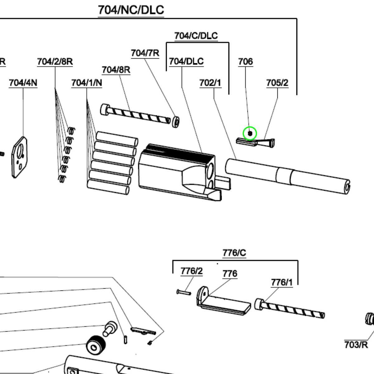 Jedná se o díl c. 706 (FRONT – SIGHT SCREW) dle rozkresu Pardini SP.