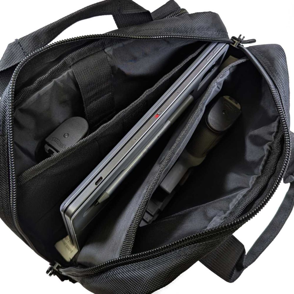 Vnitřní tříkomorový prostor je uzpůsoben prostory pro 2 zbraně a např. tablet (max.12,9") nebo dokumenty.