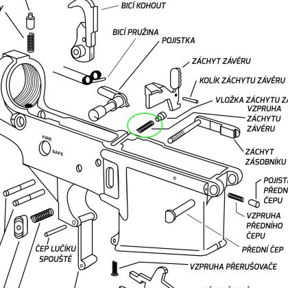 Náhradní vzpruha záchytu záveru ECI pro pušky platformy AR-15.