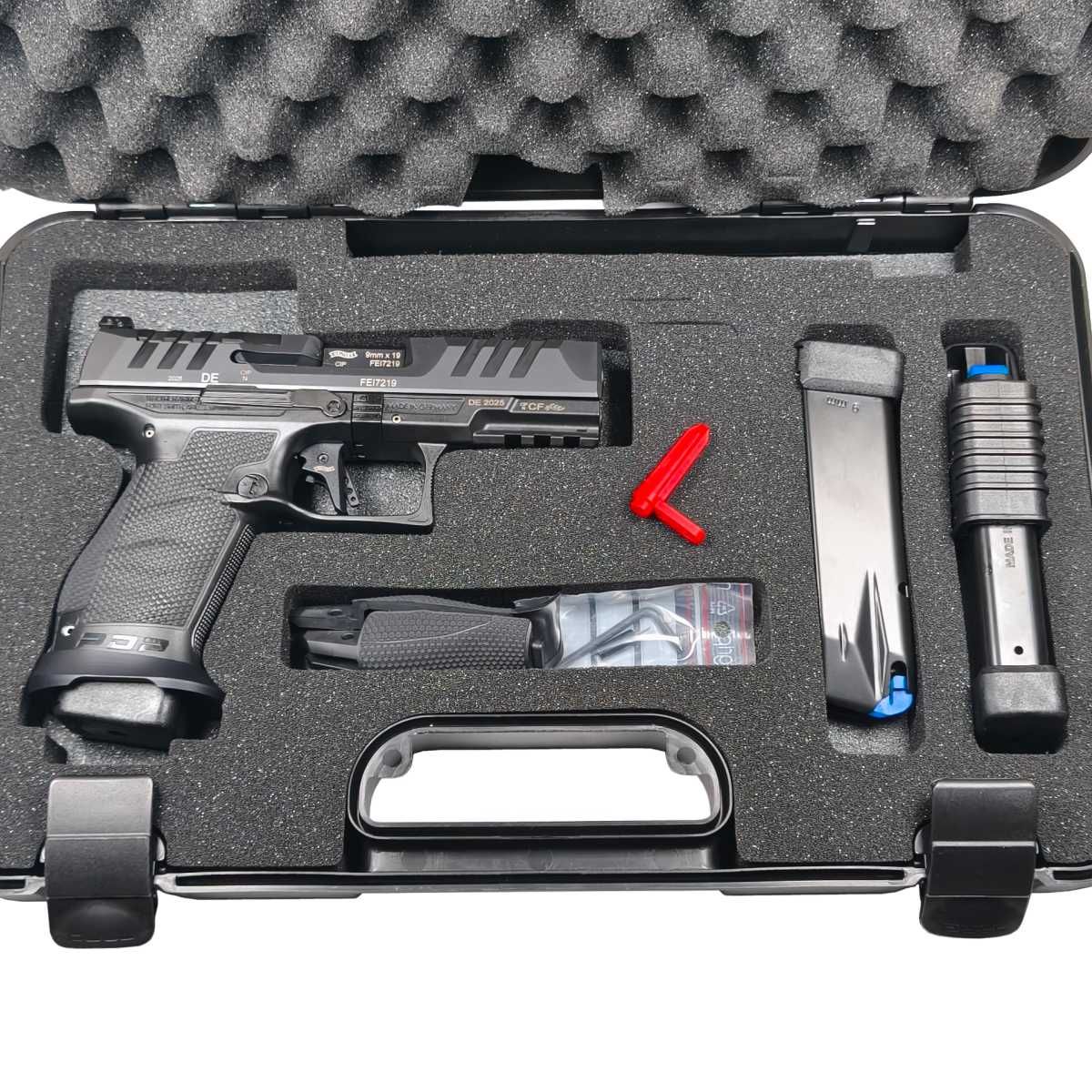 Obsah balení: plastový kufřík, pistole, 3x zásobník (18 nábojů), výměnný hřbet rukojeti S a L, nabíjecí pomůcka, torx klíč, šroubovák korekce hledí, originál (ENG) návod, ěeský návod